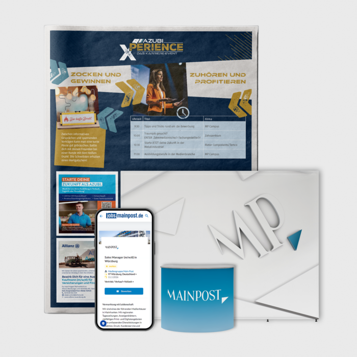 Mit dem Ausstellerpaket der AzubiXperience in Main-Spessart sichern Sie sich einen starken Auftritt auf der Ausbildungsmesse in der Mehrzweckhalle in Laudenbach und kommen in lockerer Atmosphäre direkt mit Schülerinnen und Schülern ins Gespräch. Zusätzlich steigern Sie Ihre Sichtbarkeit durch Stellenanzeigen auf unserer Karriereplattform inklusive Social Media Ads sowie durch eine Printanzeige auf den Sonderseiten in der Tageszeitung und im Anzeigenblatt rund um das Event. So positionieren Sie Ihr Unternehmen mit wenig Aufwand als attraktiven Arbeitgeber und können gezielt neue Azubis gewinnen.