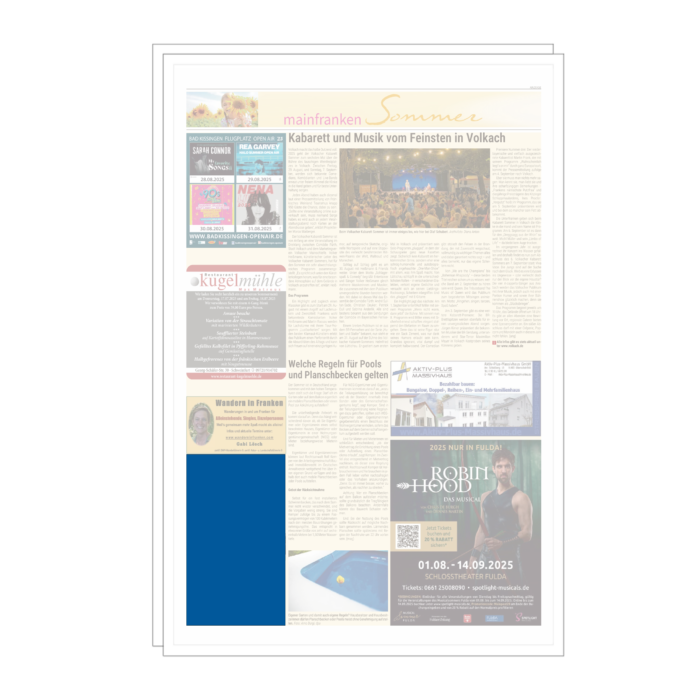 Mit der Postkartenanzeige platzieren Sie Ihre Botschaft im redaktionellen Umfeld von Mainfranken Sommer und erreichen Ihre Zielgruppe in einem thematisch passenden Kontext. Nutzen Sie diese aufmerksamkeitsstarke Präsenz, um Ihr Unternehmen wirkungsvoll zu präsentieren und nachhaltig sichtbar zu machen.