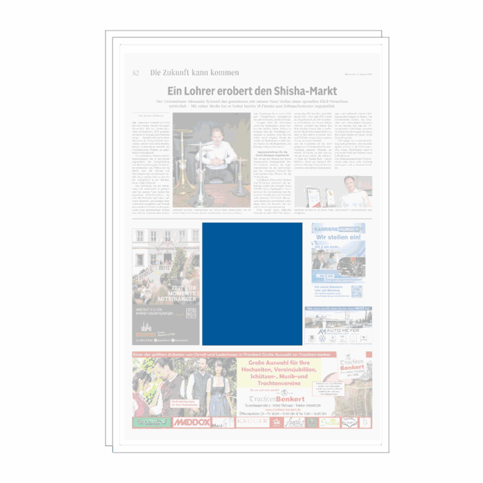Die Anzeige (92 mm breit / 100 mm hoch) wird in der Neujahrsbeilage veröffentlicht.