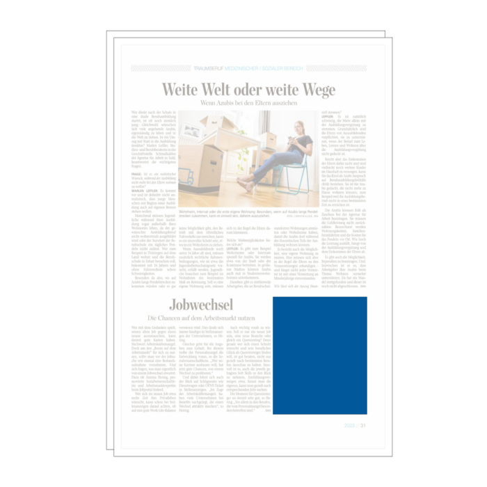 Mit der quadratischen Anzeige platzieren Sie Ihre Botschaft im redaktionellen Umfeld von Traumberuf Gesucht? und erreichen Ihre Zielgruppe in einem thematisch passenden Kontext. Nutzen Sie diese aufmerksamkeitsstarke Präsenz, um Ihr Unternehmen wirkungsvoll zu präsentieren und nachhaltig sichtbar zu machen.