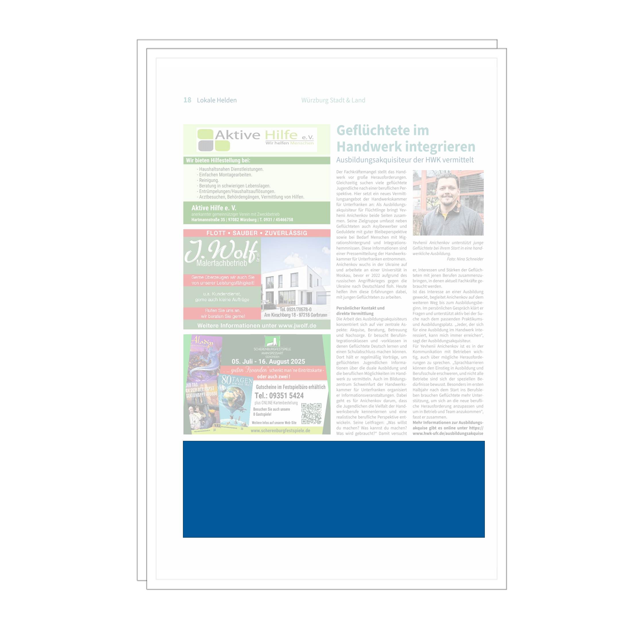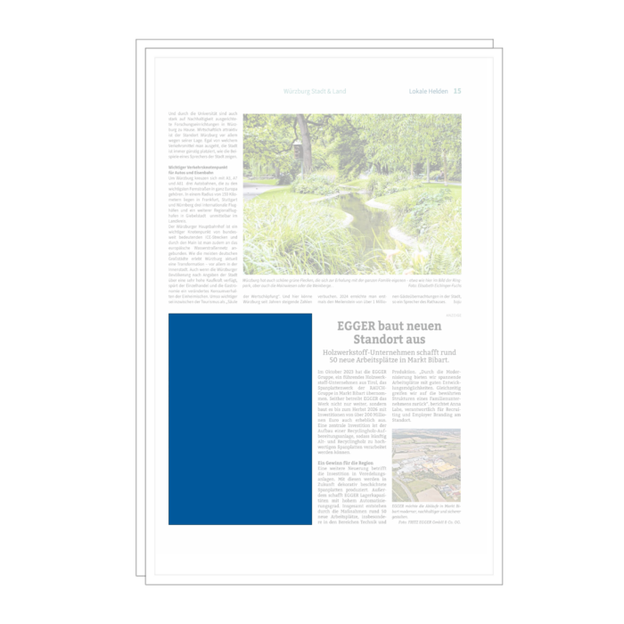 Mit der viertelseitigen Anzeige in Quer- oder Hochformat platzieren Sie Ihre Botschaft im themenstarken Umfeld dieser Beilage. Präsentieren Sie Ihr Unternehmen im Kontext von Qualität, Innovation und Nachhaltigkeit und sichern Sie sich Ihren Werbeplatz.