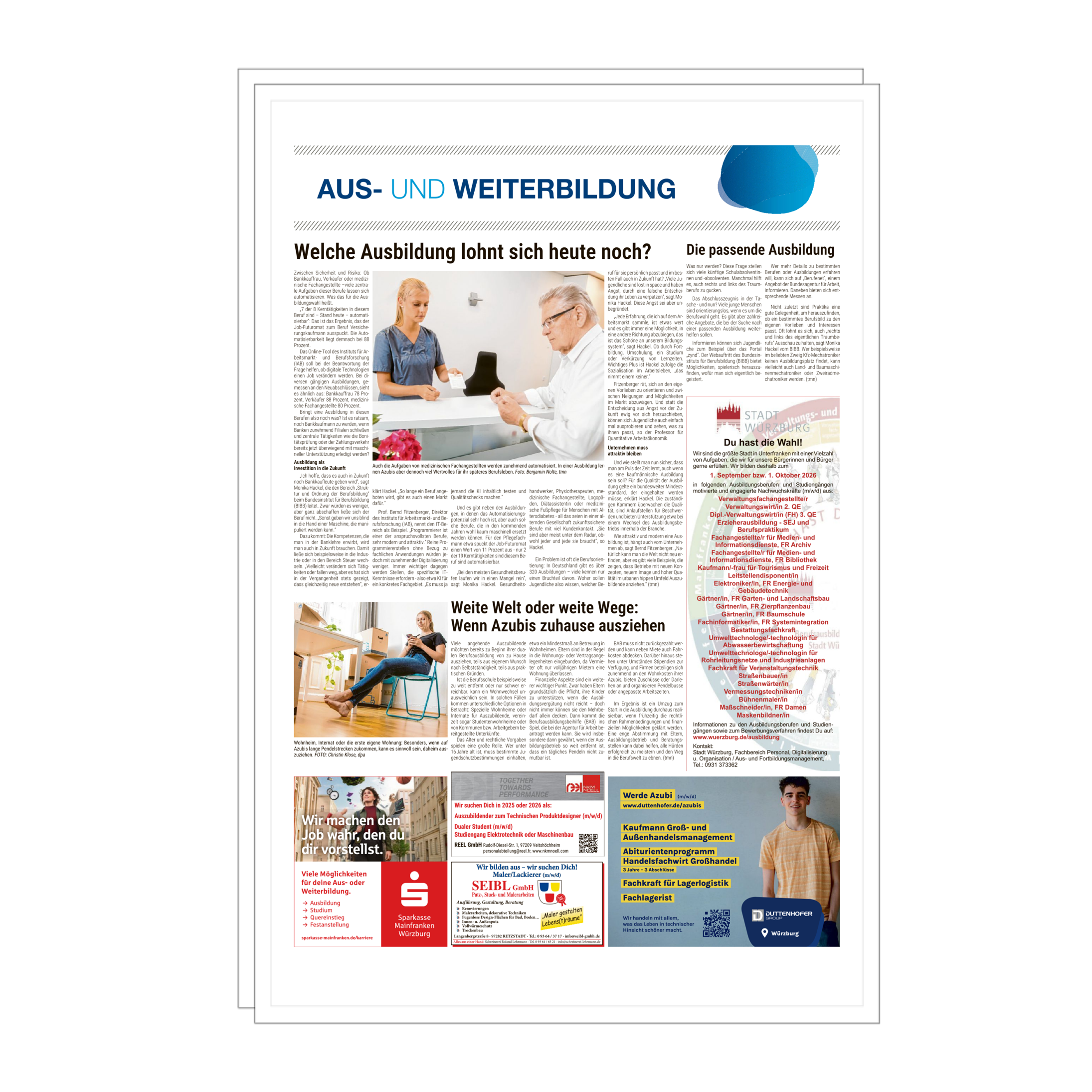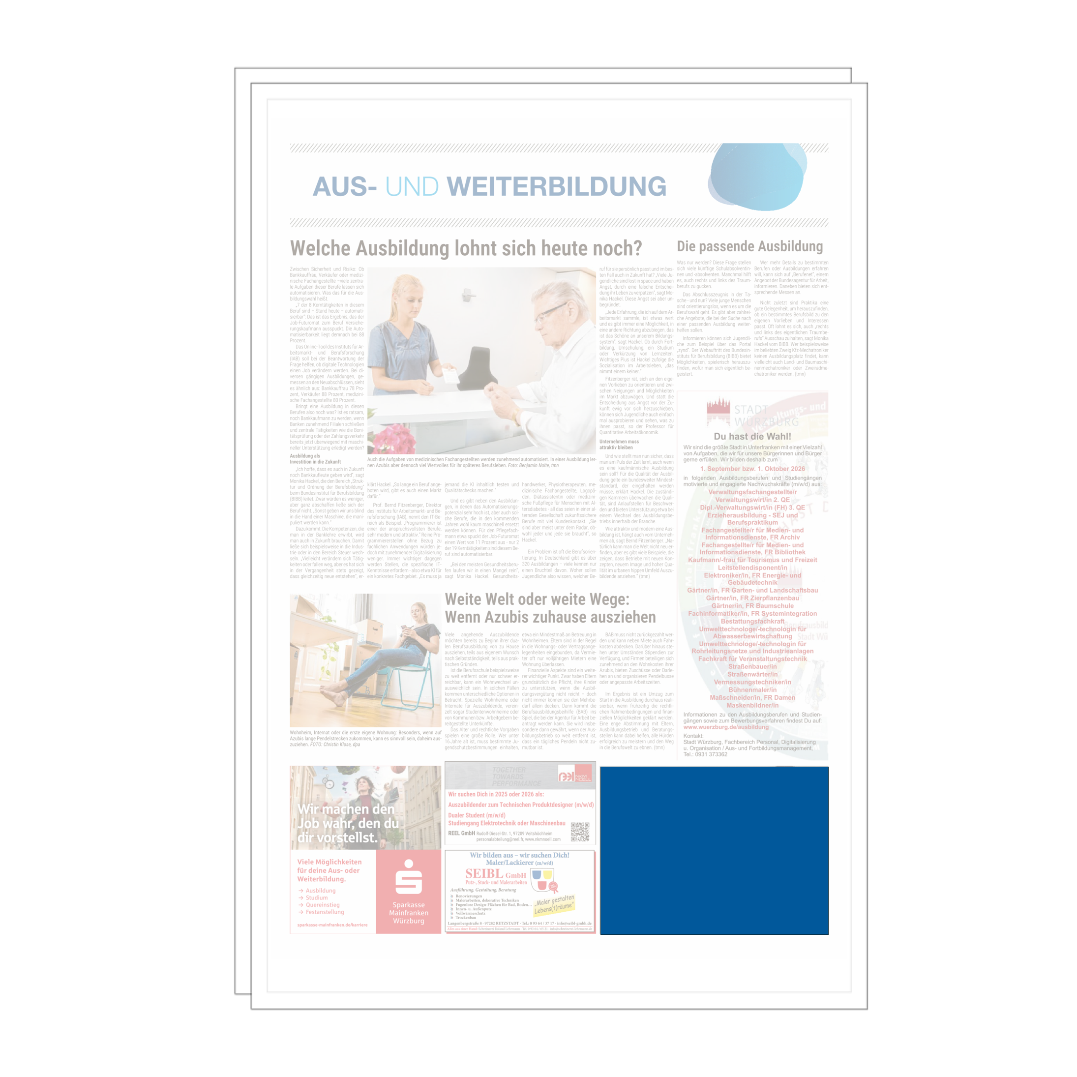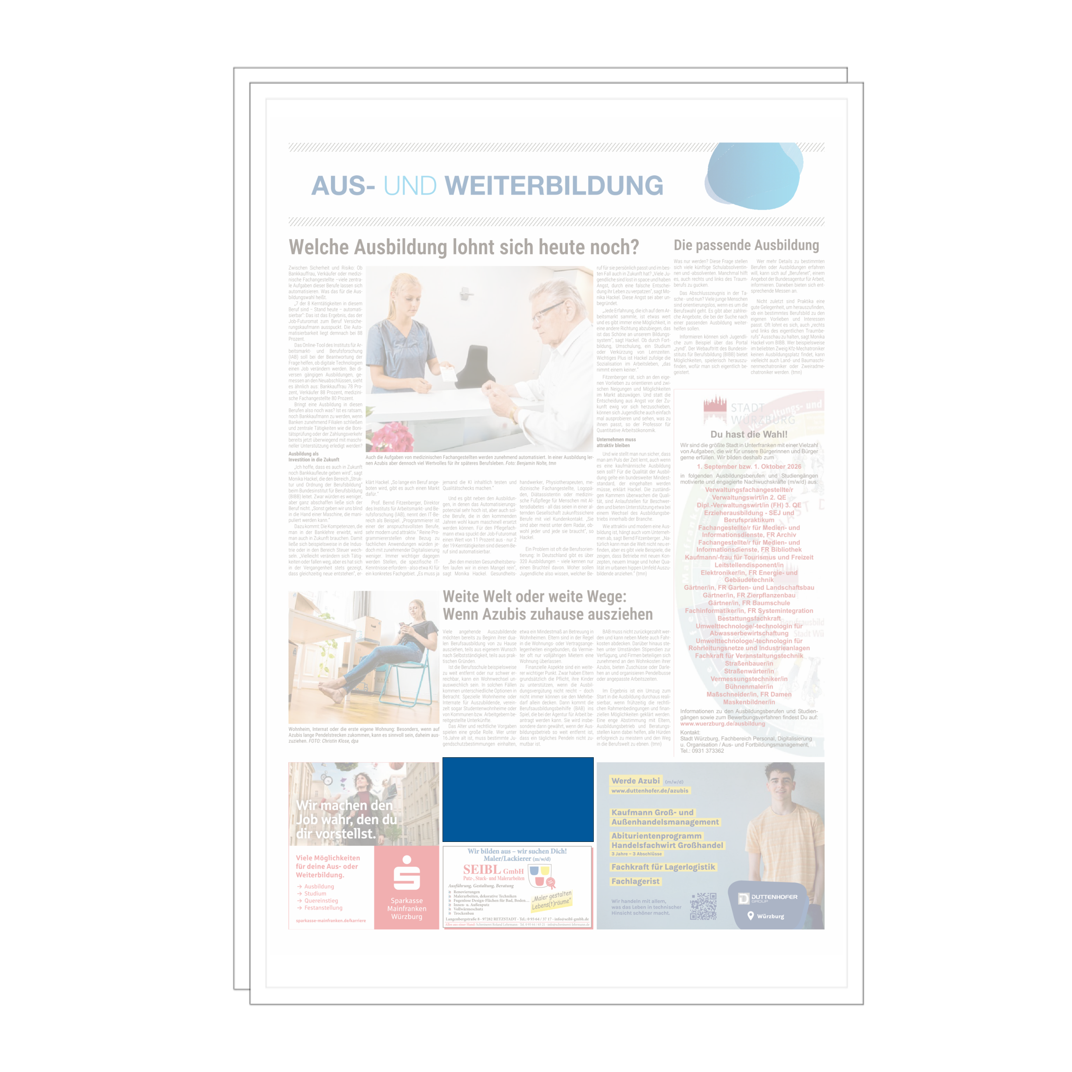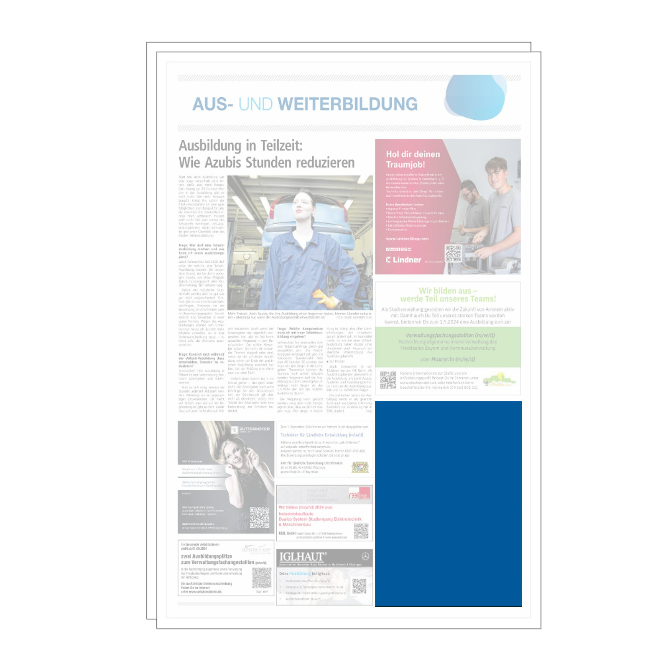Mit unserer Sonderseite Aus- und Weiterbildung präsentieren Sie Ihr Unternehmen als attraktiven Ansprechpartner für Karriere und Qualifizierung. Ausbildungsplätze, duale Studiengänge, Traineeprogramme und Fortbildungen stehen dabei im Fokus. Sie erreichen Lesende in der Region, die sich aktiv mit ihrer beruflichen Zukunft beschäftigen, darunter Schulabgänger, Studierende, Young Professionals und Weiterbildungsinteressierte.