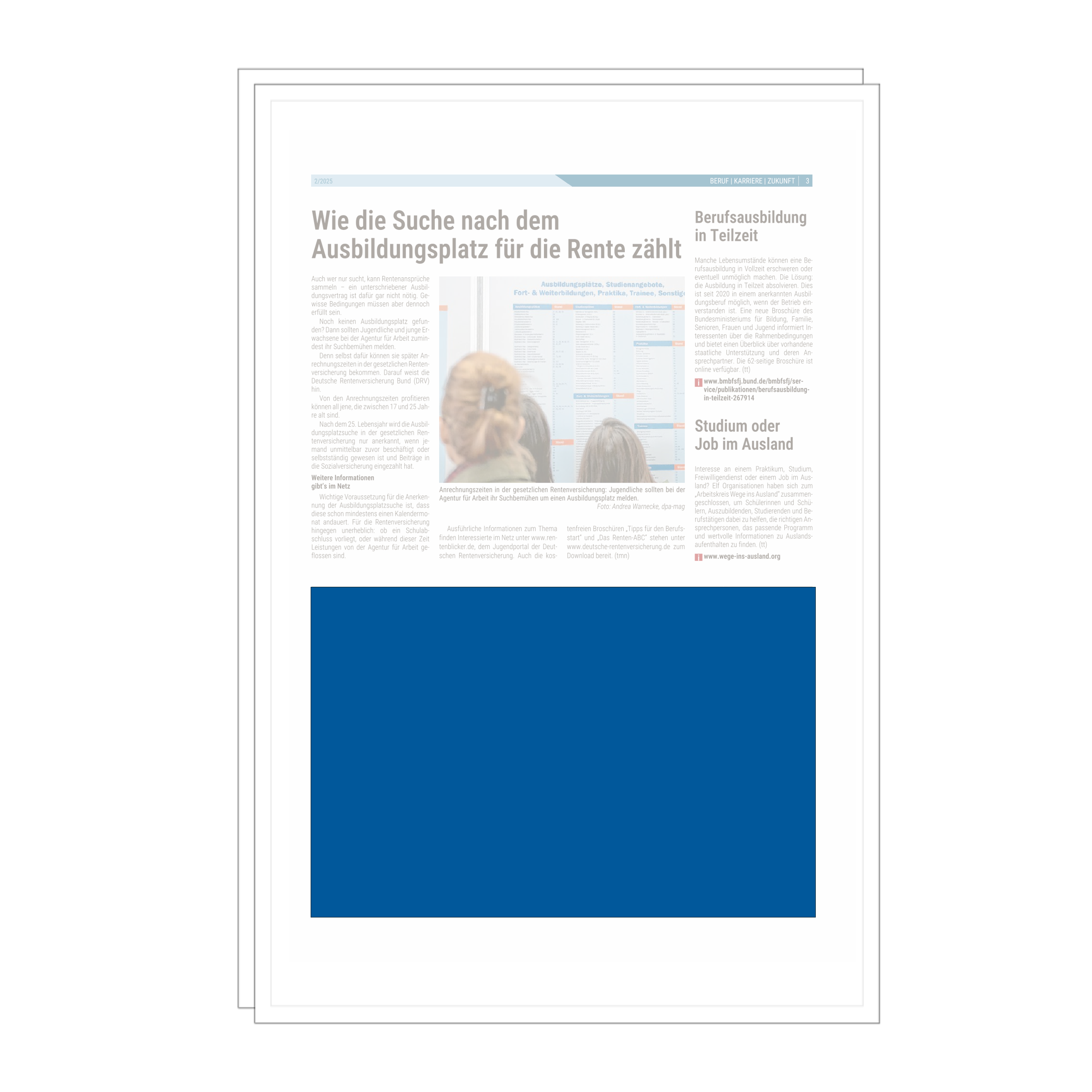 In dieser Beilage präsentieren Sie Ihre Stellenangebote wirkungsvoll und stärken Ihre Position im Wettbewerb um qualifizierte Mitarbeitende.
